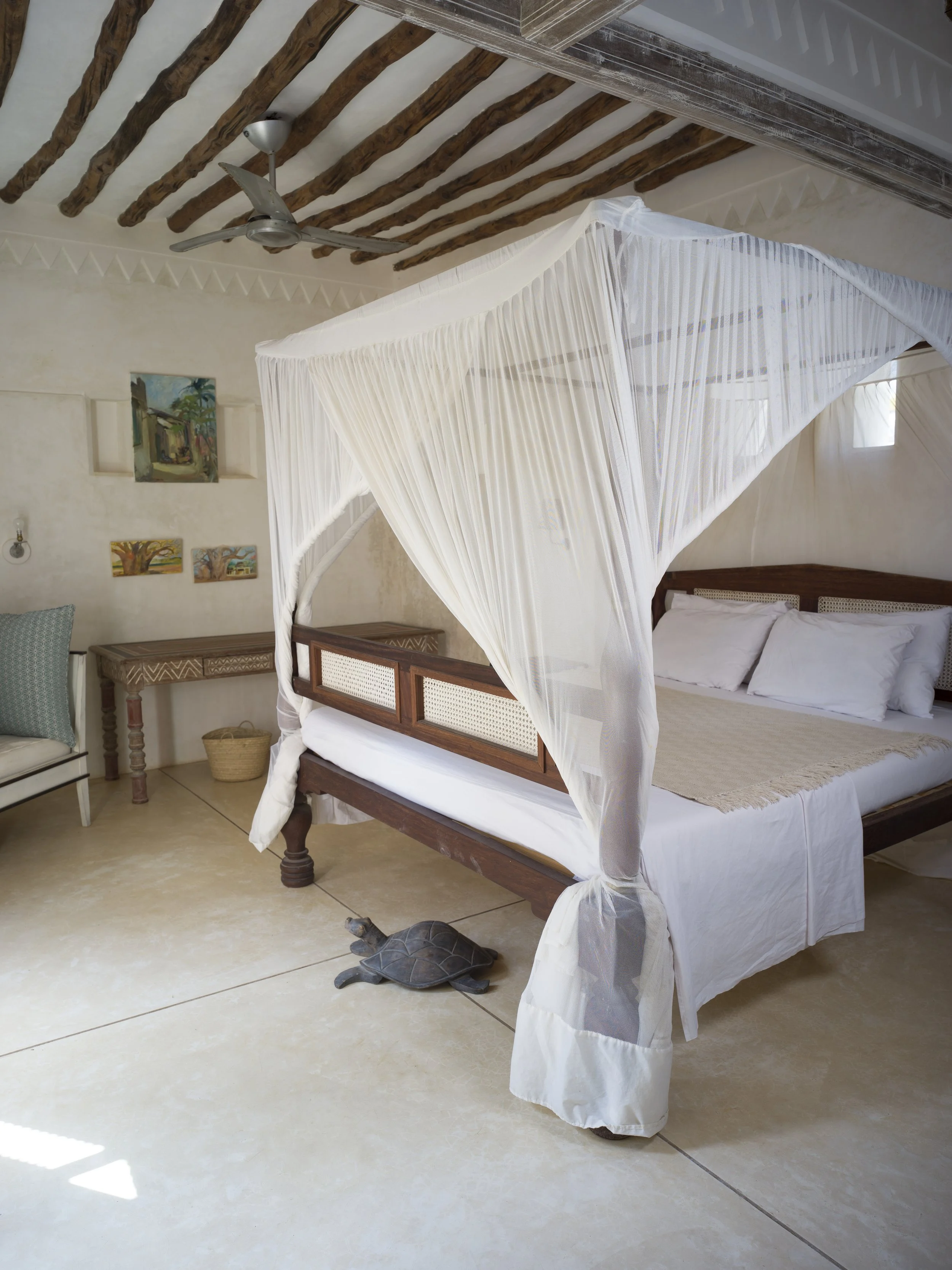 Built with coral stone and shaped by Swahili tradition, Fishbone House blends Arabic and Western influences with natural elements. Tucked away in a peaceful corner of Shela, moments away from the beach, it is a place to slow down, settle in, and live at the gentle pace of the island.